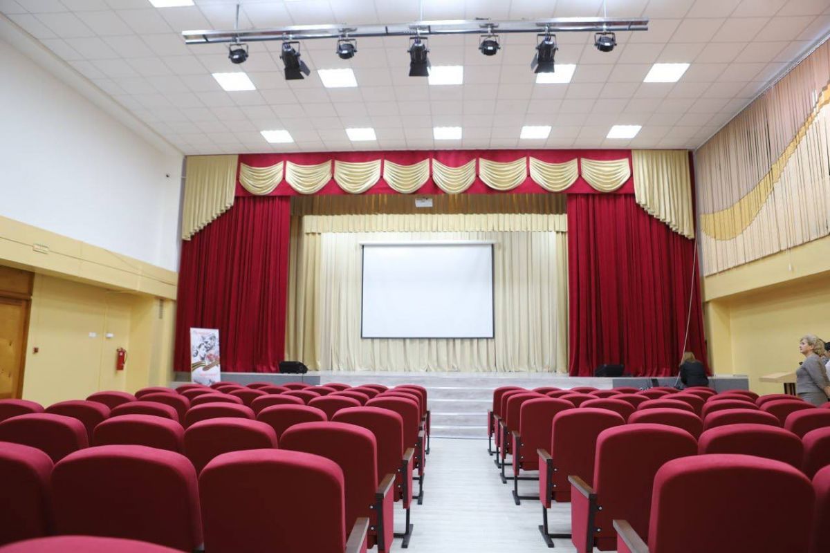 В школе №77 установили новые театральные кресла, обновили кулисы, приобрели современное световое и звуковое оборудование, включая пульты управления и софиты.