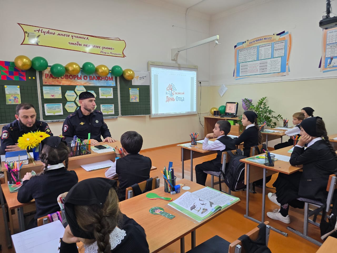 Заслуженный мастер спорта России Умар Пасхаев встретился с учащимися школы №2 города Шали, депутаты регионального парламента Ибрагим Ахматов и Артур Хаджиев посетили школу №2 имени М.Г. Гайрбекова в селе Валерик. Тематический урок в гимназии №13 города Аргун провёл депутат парламента Алихан Элембаев. Зампред Наурской организации ветеранов Афганистана Супьян Чимиев и участник СВО, капитан полиции Джамбулат Жантуев пообщались со школьниками Наурской школы №3.